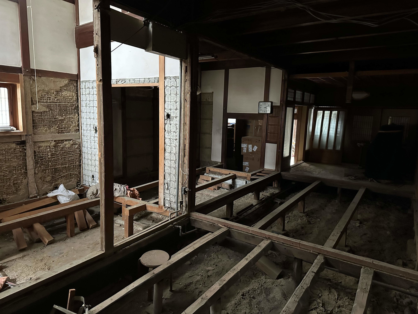 前面道路は4m未満の市道で準防火地域に建つため、付属屋を含めて256.16㎡(77.5坪)の建物を法適合させて大規模改修するためには、増築を一切おこなわないことが条件となる。