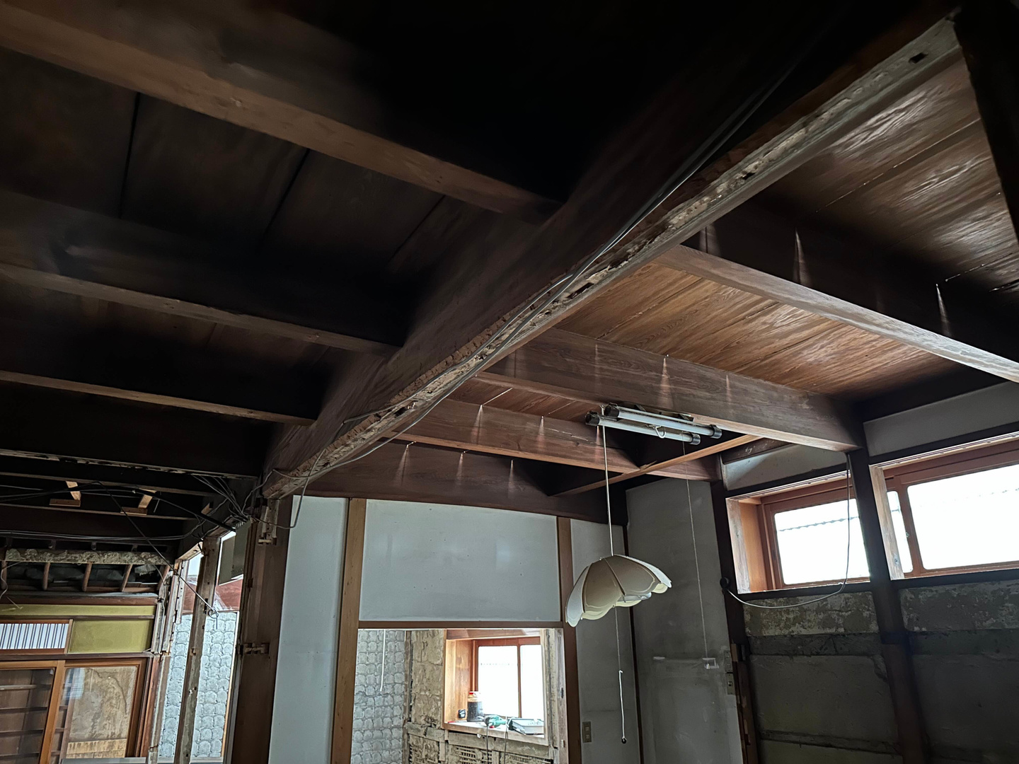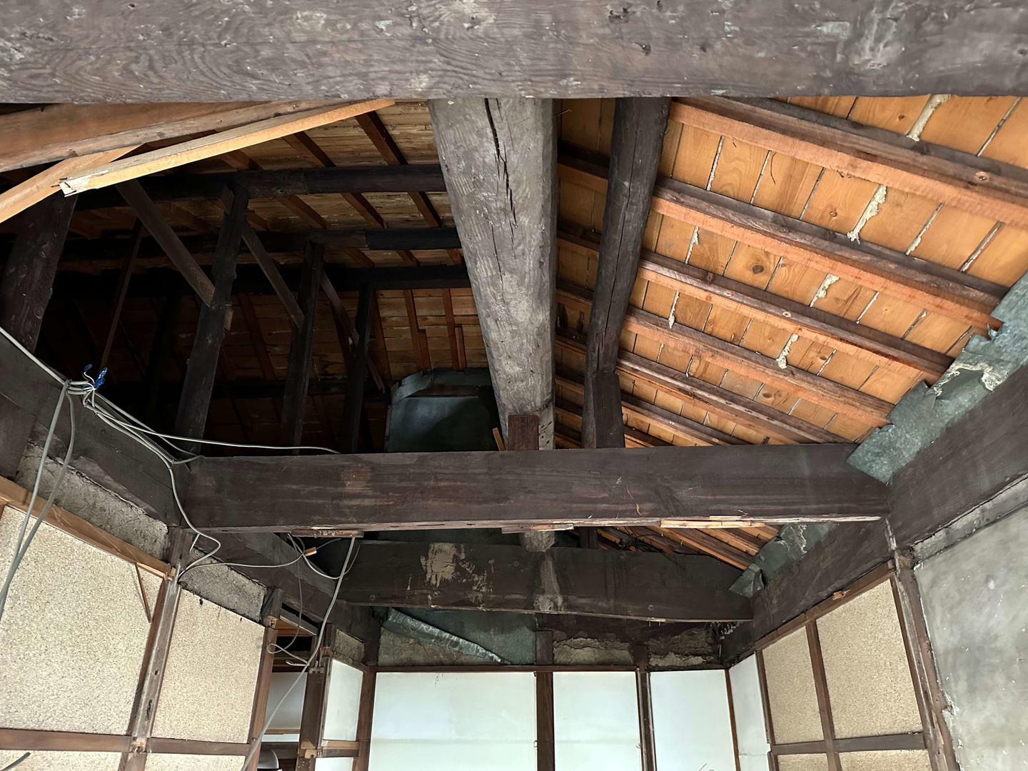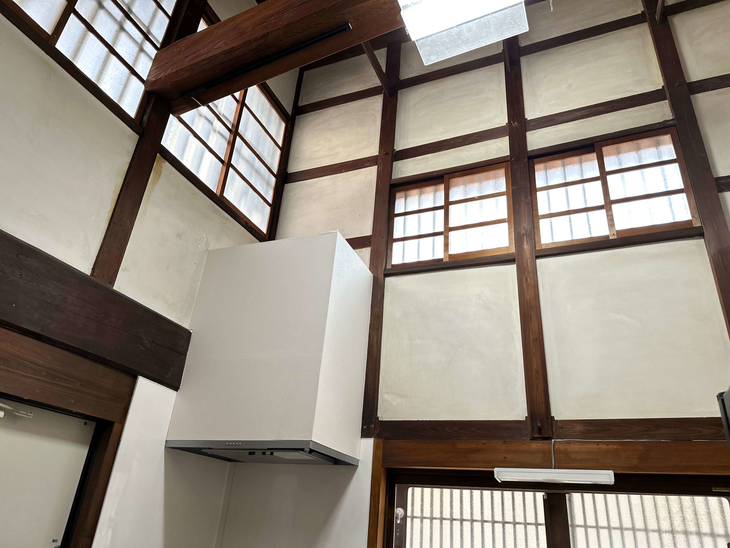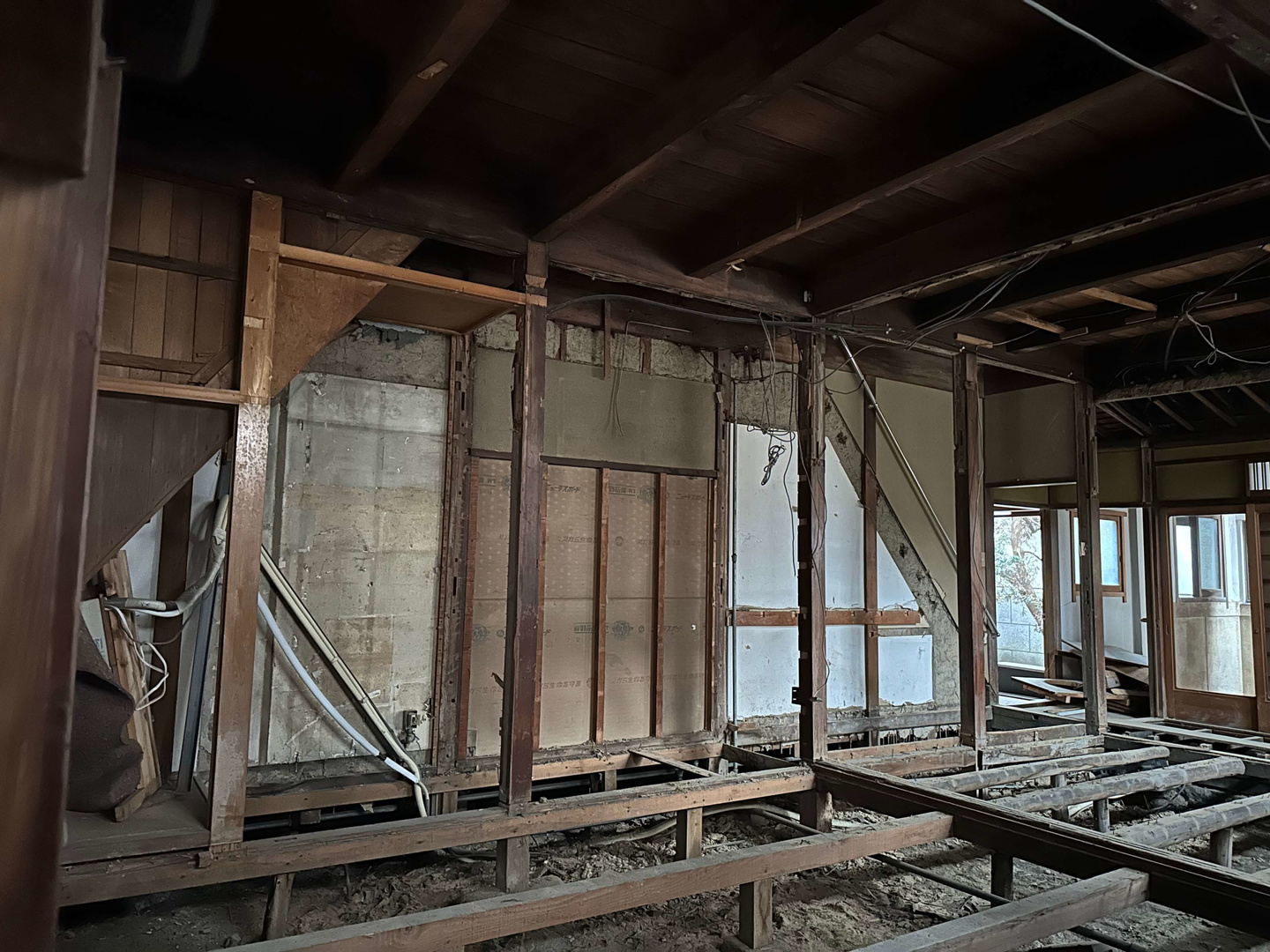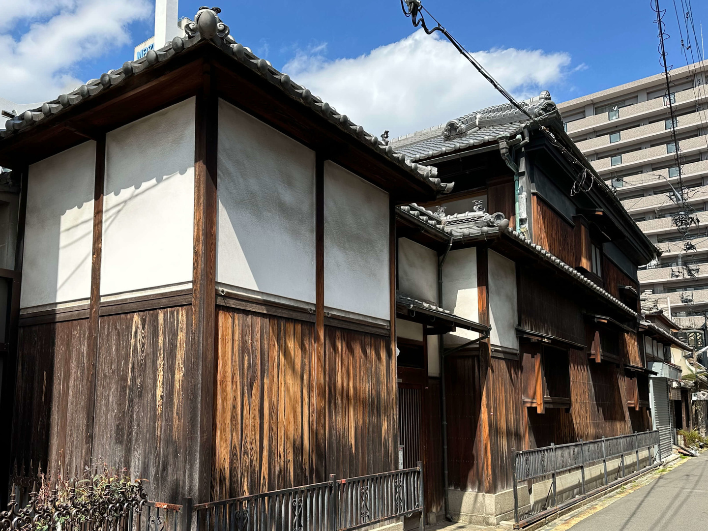 前面道路は4m未満の市道で準防火地域に建つため、付属屋を含めて256.16㎡(77.5坪)の建物を法適合させて大規模改修するためには、